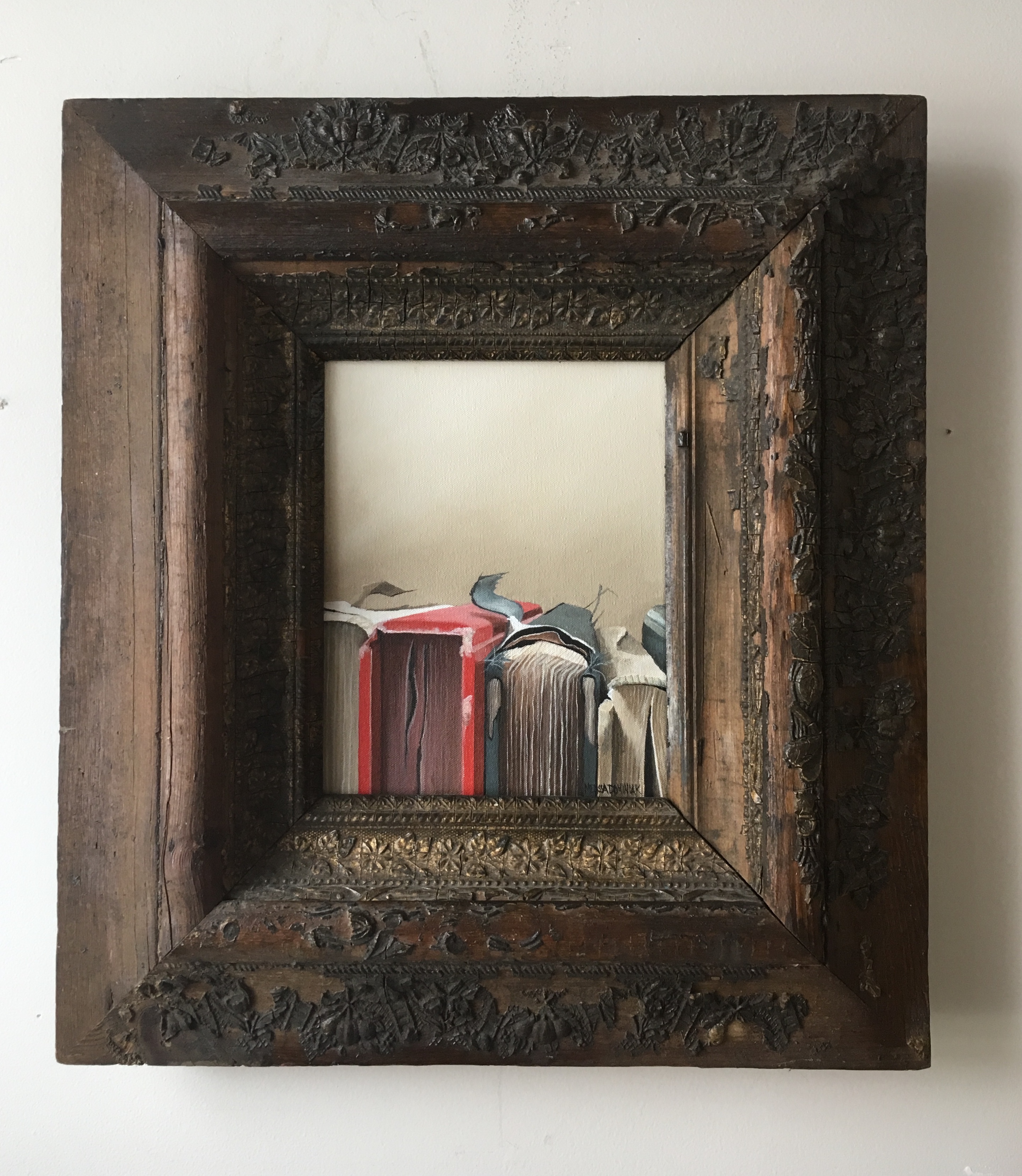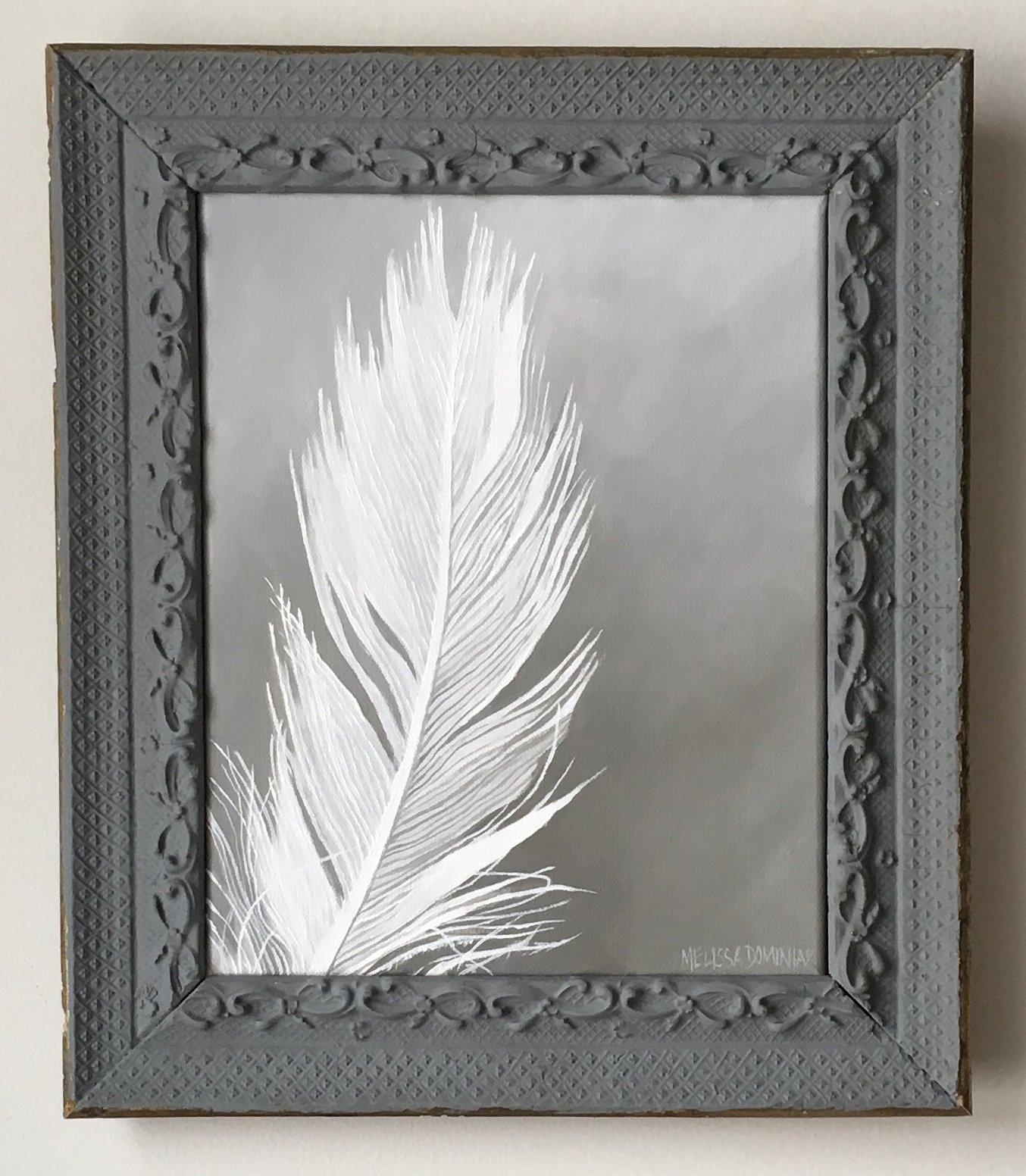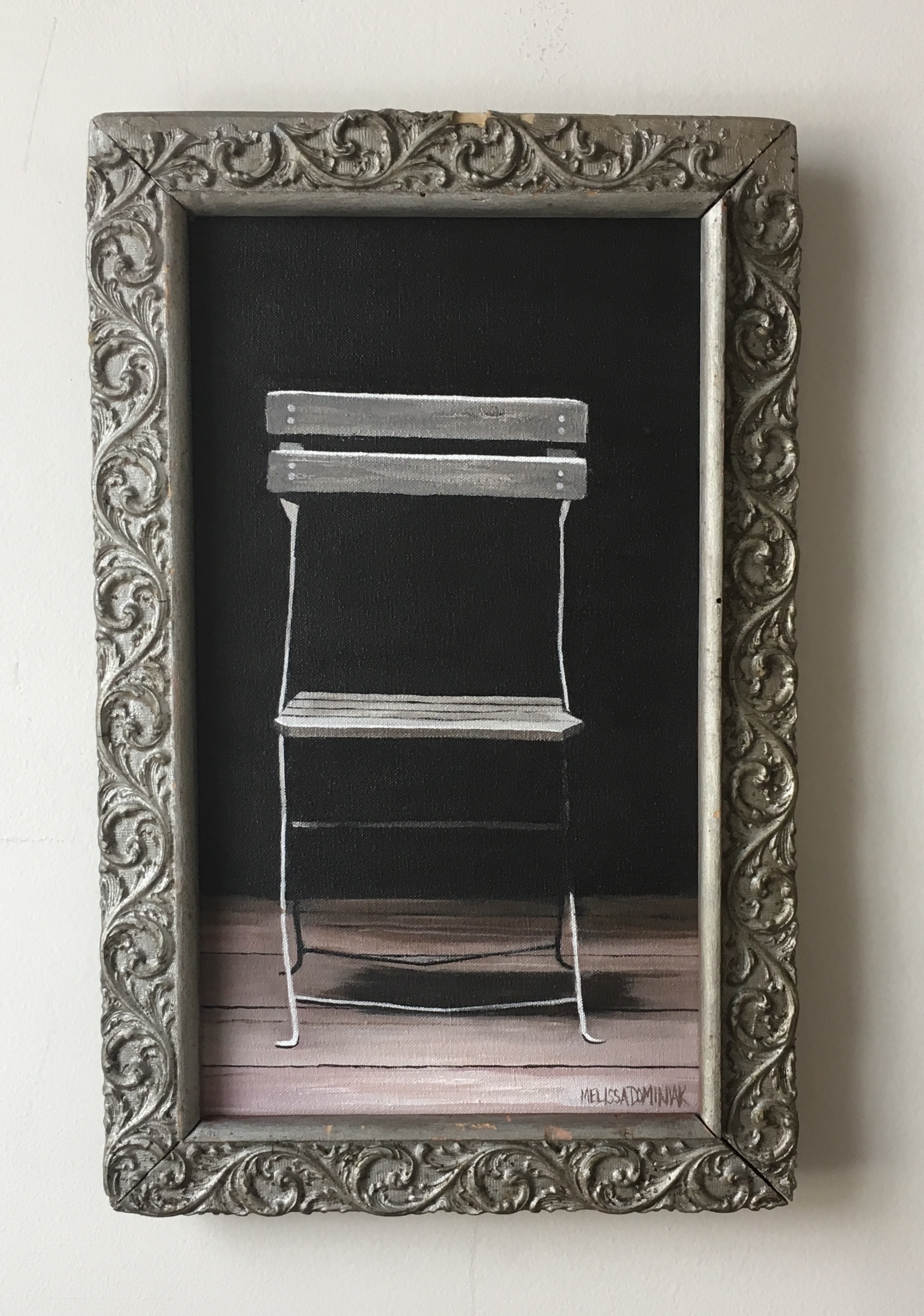 All paintings are acrylic on canvas. All of my old frames are found at antique stores throughout the country, often serving as inspiration for a painting. They are not perfect. They have flaws. They are meant to be that way. I am more than happy to sell a painting without the frame, just let me know.